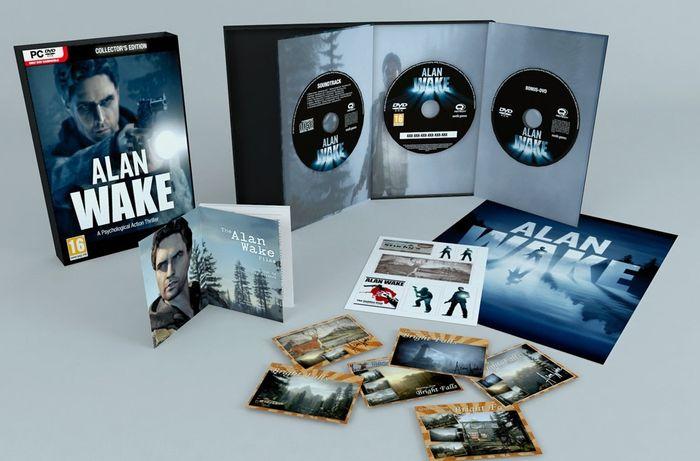 В коробке покупатели найдут саму игру, а также бонусный диск с материалами, посвященными истории Remedy и разработке Alan Wake, с несколькими музыкальными клипами и игровыми роликами. Кроме того, в комплект коллекционного издания включат книгу The Alan Wake Files, на 144 страницах которой писатель Клэй Стюарт (Clay Steward) расскажет о загадочных приключениях Алана Уэйка, шесть почтовых открыток, запечатлевших разные сцены из игры, а также семь наклеек и двухсторонний плакат.